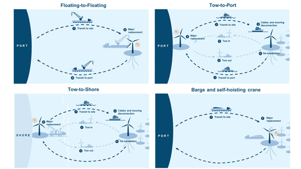 Four Strategies for Major Component ReplacementThis article details the current state of O&M in floating wind with a particular focus on major component replacement strategies. It summarises year-long discussions held by the expert members of the World Forum Offshore Wind.