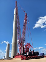 Mammoet has introduced a CC 38.650 crawler crane to its fleet in Brazil during the third quarter of 2022. The crane is currently on site to complete its first tasks at the Cajuina Wind Farm in Angicos region, Rio Grande do Norte, Brazil.The Cajuina Wind Farm will be comprised of 55 wind turbine generators (WTGs) which will have a total capacity of 314MW. Mammoet’s new machine will specifically focus on concrete tower erection, with boom lengths ranging from 105 to 129m (344 – 423ft.), while the crane has the capacity to lift sections up to 255 tons.